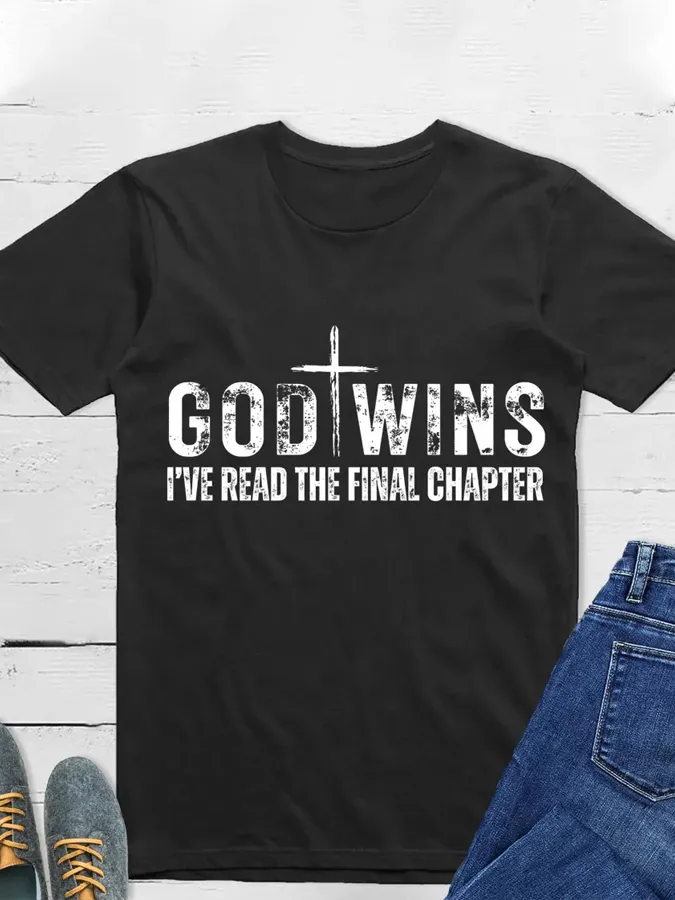 Men's God Wins Printed Crew Neck T-Shirt